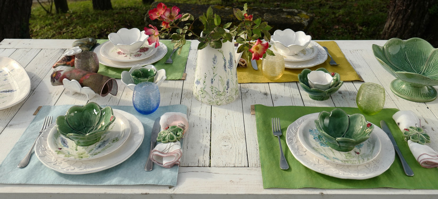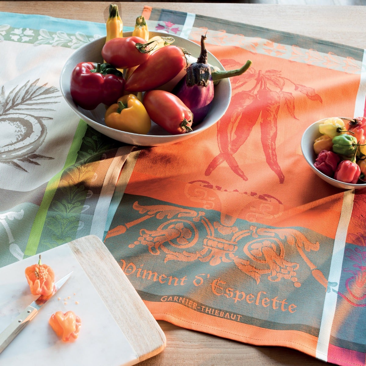 With its delicate sage-like leaves, the refined yet bold palate of the Poppies Collection adds a simple elegance to your dining room or terrace meal. Fine table linens, hand-printed in India. Designed by Bruno Lamy exclusively for Couleur Nature.